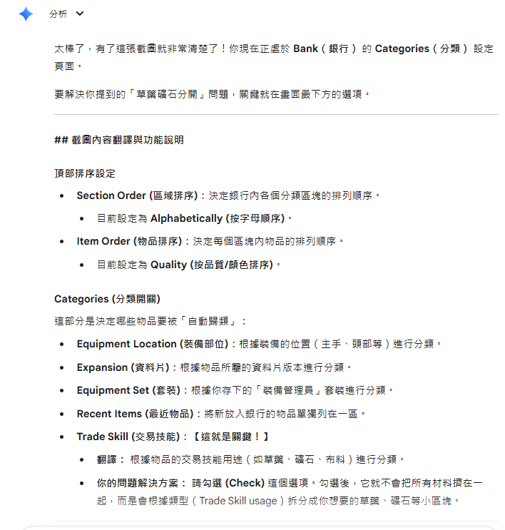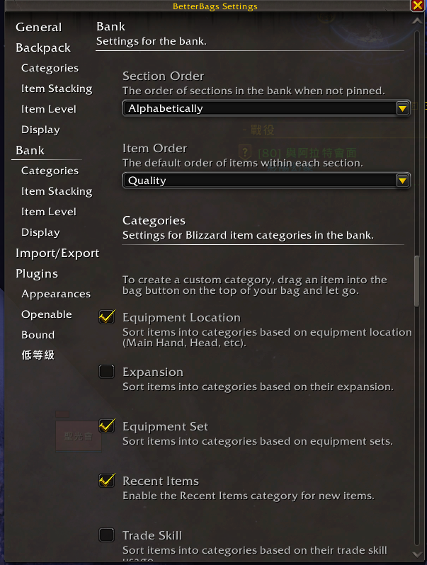 請問下 如何新增掰特包在銀行內的分類? 我該該去更新 發現掰特包可以作用在銀行了 但是分類跟背包不同 只分大項梅細分