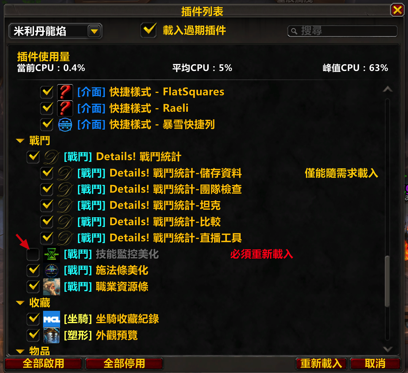 技能監控美化停用之後就可以囉