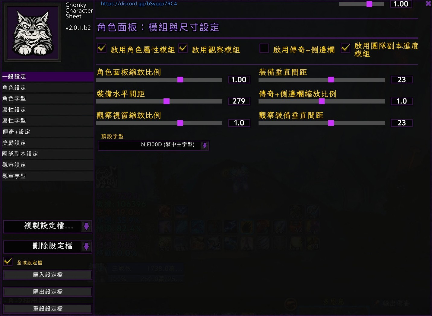 選項截圖:(預設的字體只有提示字體並且偏小,作者有加入一堆英文字體但都不支援中文,手動修改加入兩個內建字體,請自行調整)