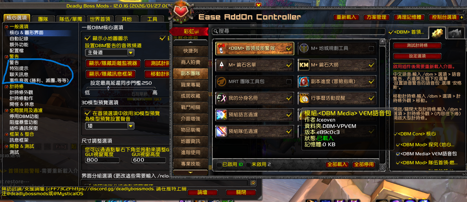 火源之界、奧杜亞、黑暗神廟的三個漫游團隊副本的DBM在哪下載?