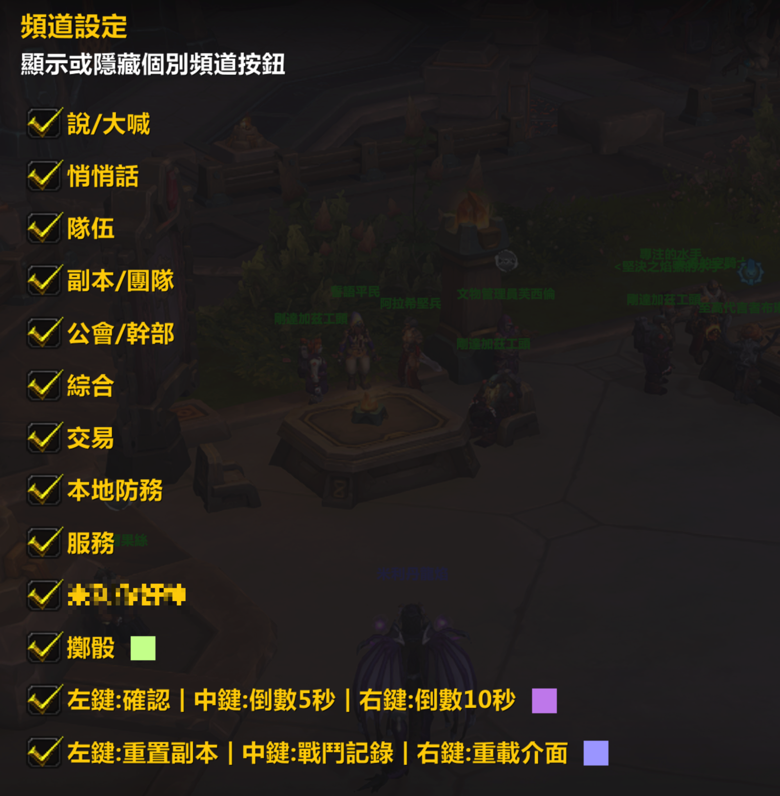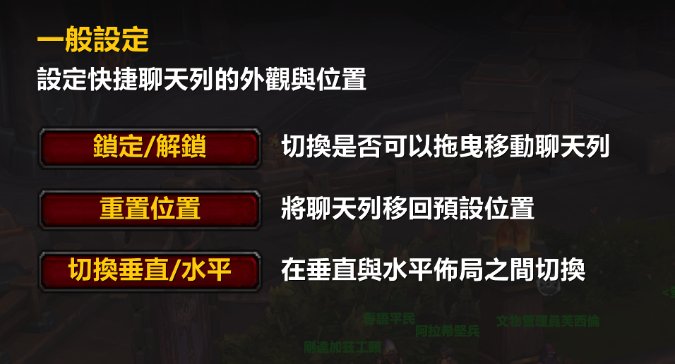 - 左鍵點擊 頻道按鈕可切換至該聊天頻道